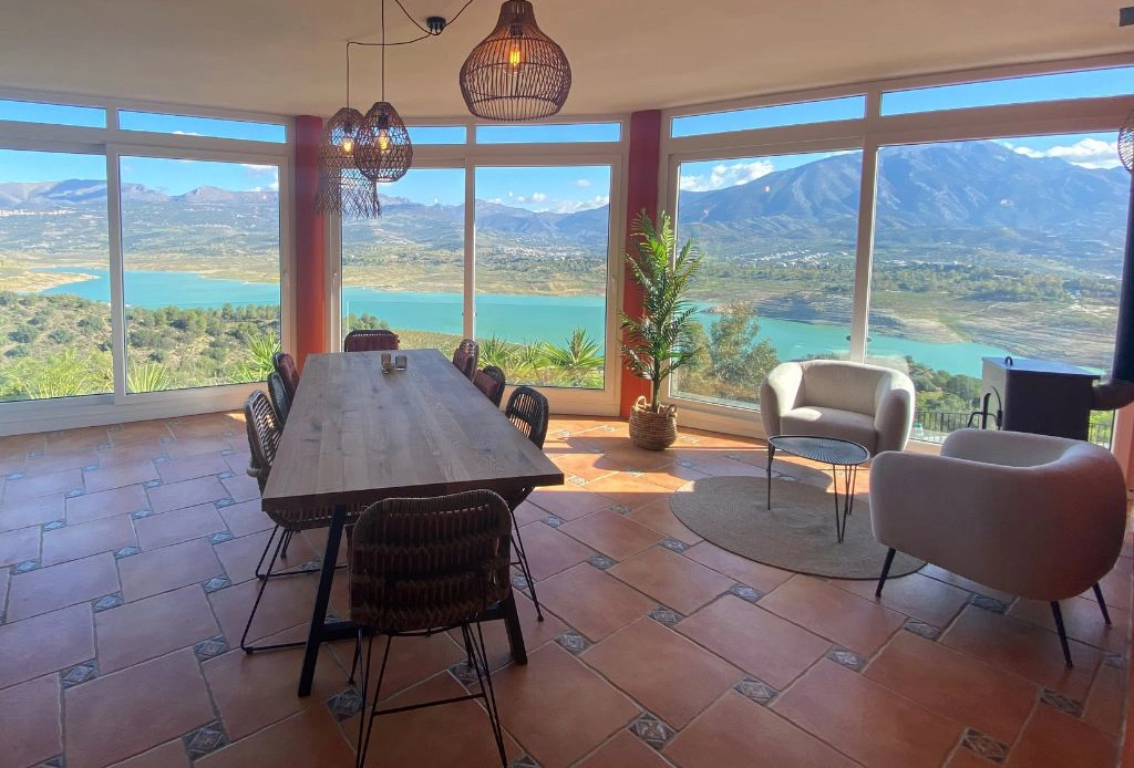 De villa heeft uitzicht op het prachtige azuurblauwe stuwmeer van Viñuela. Verder is de villa omringd door bergen en natuur. Een sfeervol afgelegen plekje waar je helemaal tot rust kunt komen en jezelf kunt onttrekken van het massatoerisme.