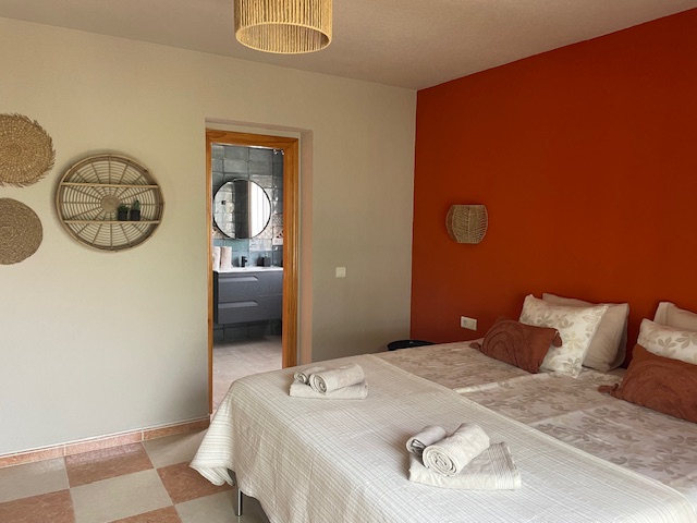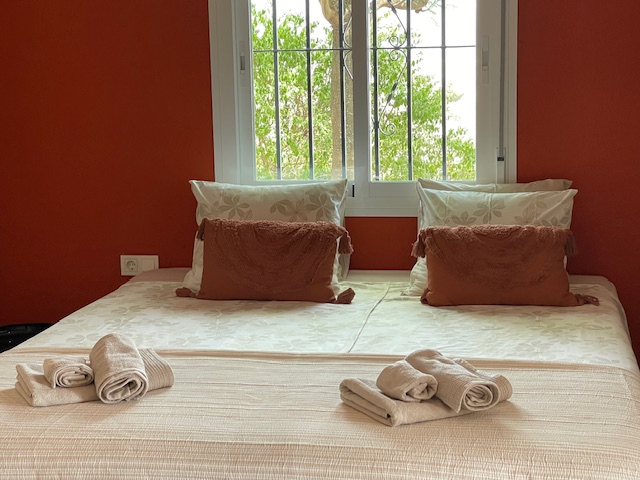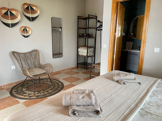 Casa Bothe is voorzien van 4 slaapkamers en 3 badkamers. Slaapkamer 1 bevindt zich boven, op dezelfde etage als de keuken, woon- en eetkamer. Deze kamer is voorzien van e boxspring, en een eigen badkamer met douche en toilet, kledingrek en een balkon met uitzicht op het stuwmeer.